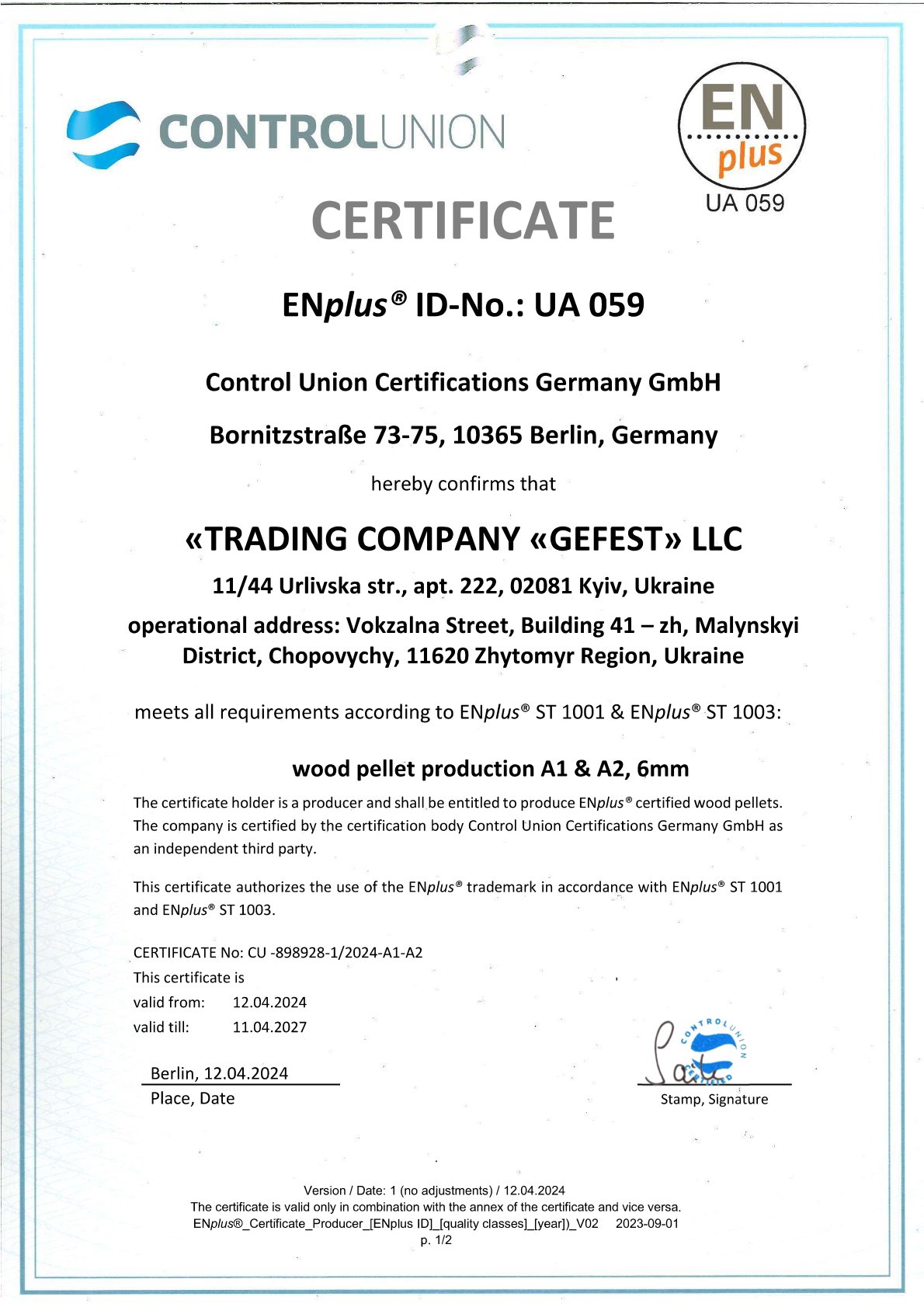 Nel 2024, la nostra azienda si è sottoposta a un audit indipendente e ha ricevuto il certificato ENplus® A1 per i pellet di legno di nostra produzione.